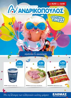 Μην χάσετε τις προσφορές της ΑΝΔΡΙΚΟΠΟΥΛΟΣ και μείνετε ενημερωμένοι για τις καλύτερες τιμές και προωθητικές ενέργειες που είναι διαθέσιμες σε όλα τα καταστήματα κατά τη διάρκεια του Φεβρουαρίου 2026. Ξεκινήστε τώρα την εξερεύνηση όλων των καταστημάτων ΑΝΔΡΙΚΟΠΟΥΛΟΣ και ανακαλύψτε τις προσφορές που έχουμε ετοιμάσει για εσάς!