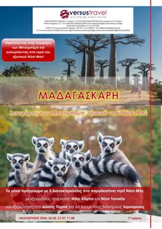 Καλώς ήρθατε στο Tiendeo, η καλύτερη επιλογή σας για να βρείτε τις πιο ξεχωριστές προσφορές, καταλόγους και προωθητικές ενέργειες για Ταξίδια στην Μαρούσι. Κατά τη διάρκεια του Απριλίου 2026, στην πλατφόρμα μας μπορείτε να ανακαλύψετε τις τελευταίες προσφορές από την Versus Travel, μία από τις πιο δημοφιλείς μάρκες στον τομέα Ταξίδια στην Μαρούσι.
